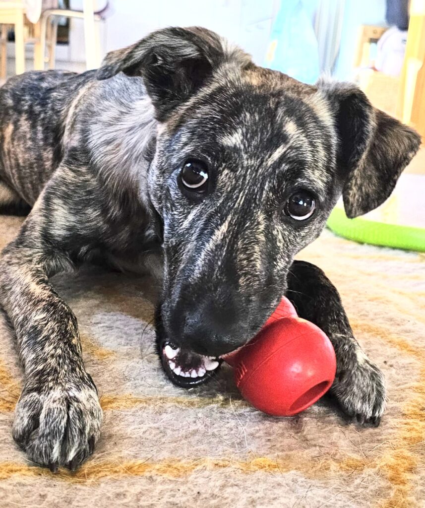Ulla ist eine ca. 16 Wochen alte Hündin, die von unserem Mitarbeiter auf der Fahrbahn, zwischen hupenden Autos gefunden wurde. Wahrscheinlich dort ausgesetzt, war sie total verwirrt und verängstigt und kam dankbar zu unserem Mitarbeiter, der sie mitnahm und zu uns brachte. Ulla ist eine hochintelligente Hündin, die schnell lernt, neugierig ist, aber auch verspielt und verschmust. Mit Artgenossen ist sie gut sozialisiert.